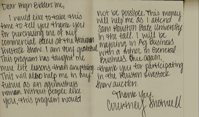 High Bidders was founded in 1984 by individuals with an idea and a desire to combine their resources to provide additional support for the low-end of the Junior Auctions at the Houston Livestock Show and Rodeo™.